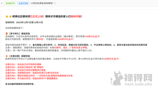 现在正好是年底,禄得网这边也有发帖活动,月初就想着在这个主题方向4写点啥,也是给自己这一年的实盘做下总结,欢迎各位大佬指导与指正,谢谢~