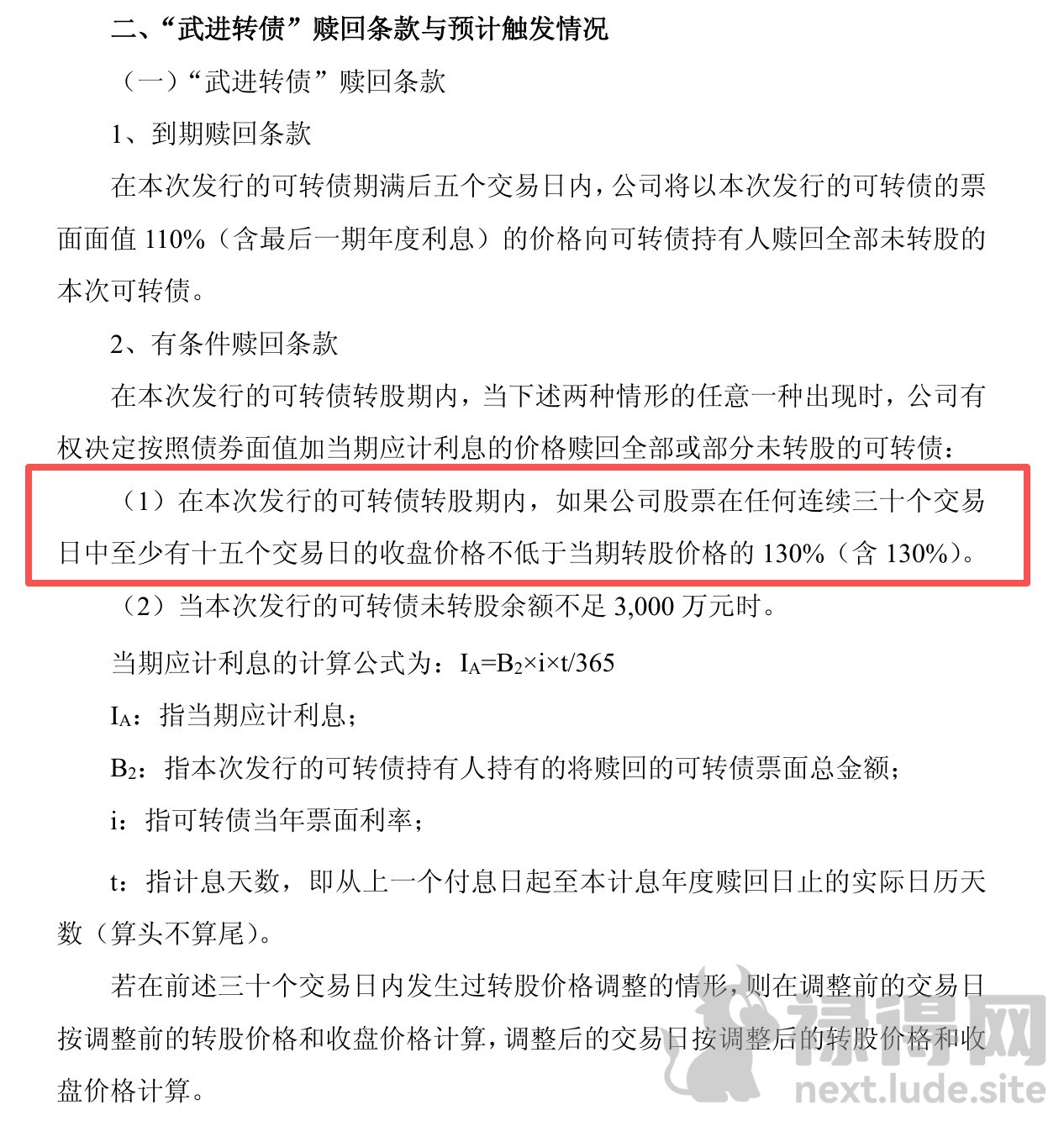上图为武进转债的赎回条款,其中红框部分即为通常所说的“强赎条款”: