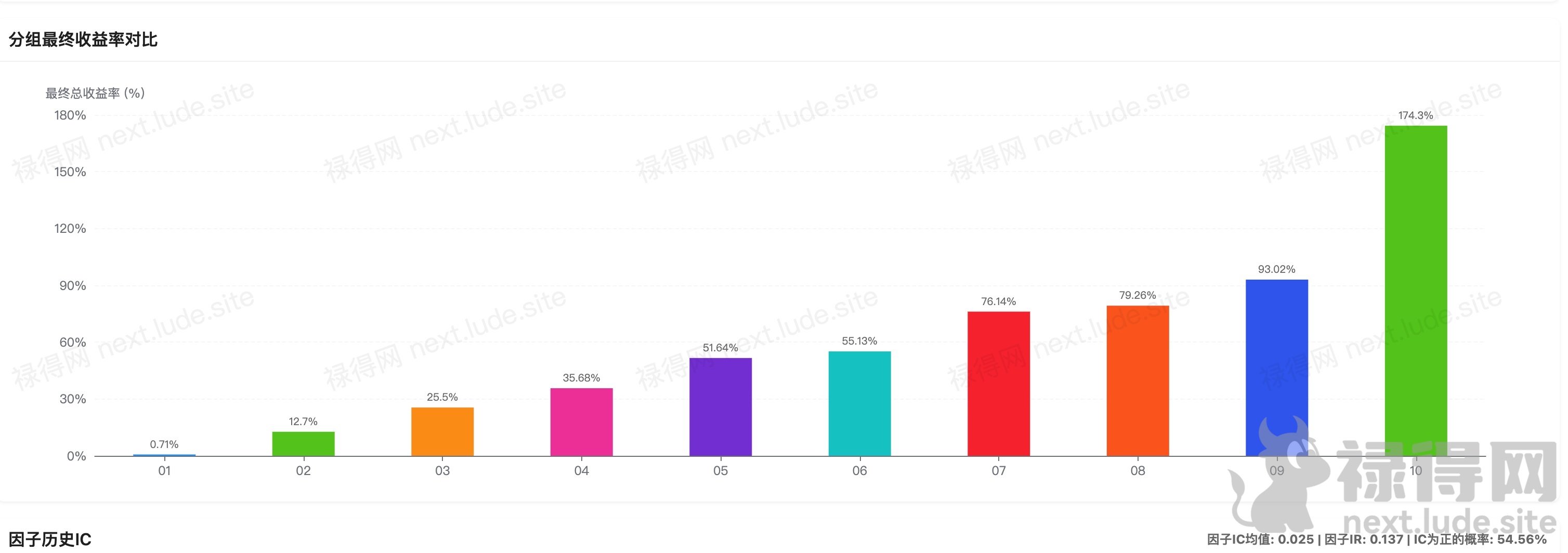 下面是分10个分箱的回测图: