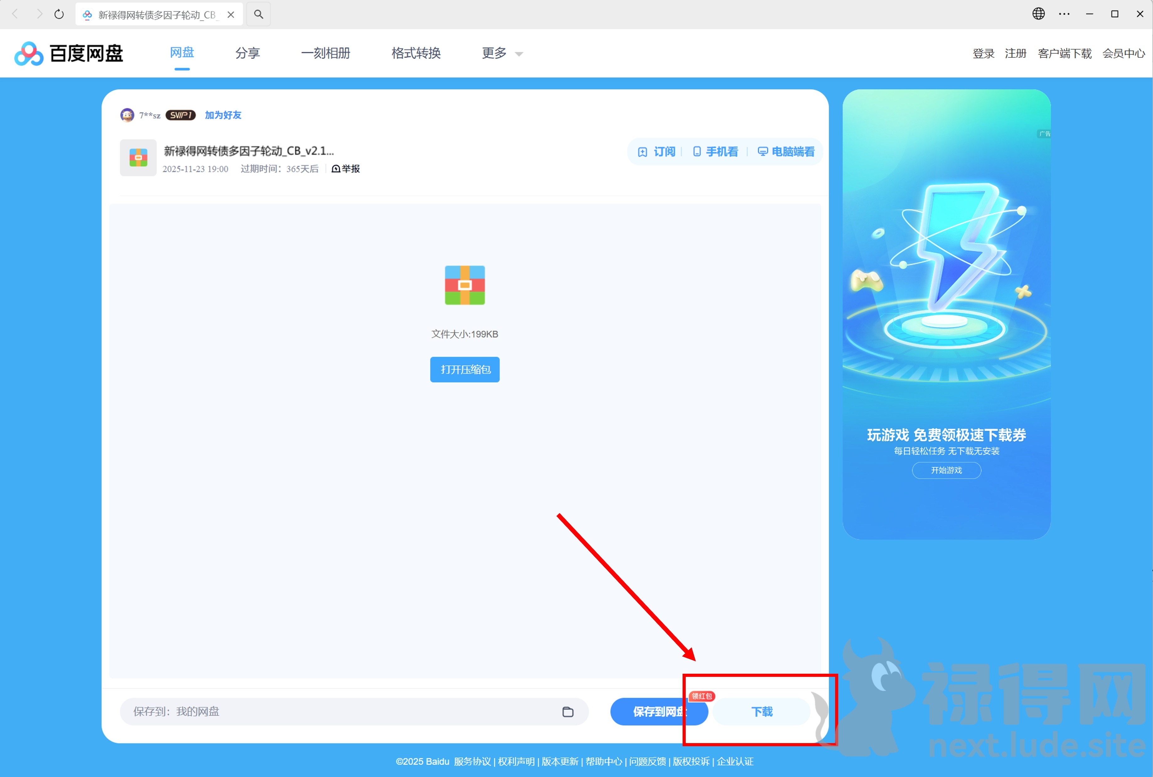 从百度网盘下载并解压获取rzrk文件